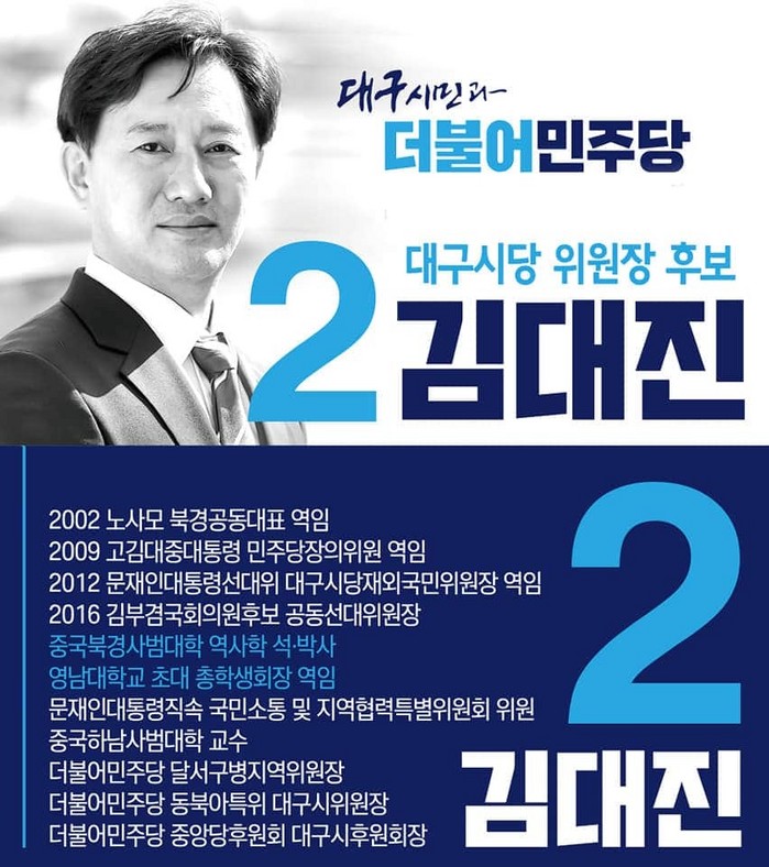 | ▲ 대구시당위원장 선거 기호2번 김대진 후보. (자료=대구시당 제공) |