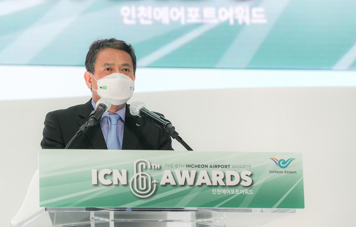 | ▲ 지난 1일 오후 인천공항 제1여객터미널 밀레니엄홀에서 열린 ‘제6회 인천에어포트 어워드(ICN Awards)’에서 인천국제공항공사 김경욱 사장이 축사를 하고 있다.(사진=인천국제공항공사) |