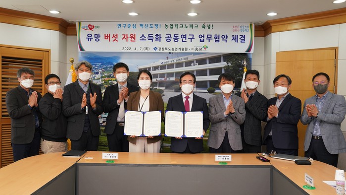 [세계로컬타임즈 이장학 기자] 경북농업기술원은 농업전문법인 송로와 농업분야 새로운 소득원 개발 연구에 박차를 가하기 위해 공동연구 추진을 위한 업무협약을 체결했다고 7일 밝혔다.