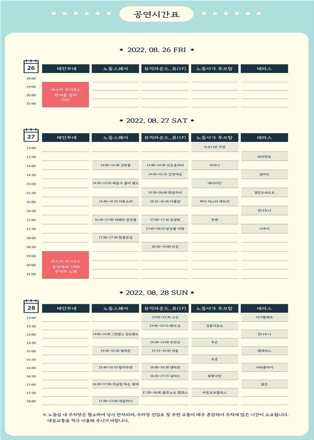 연인들을 위한 낭만적인 재즈와 발라드 공연, 아이와 함께 온 가족단위 방문객을 위한 서커스 등 퍼포먼스, K컬쳐의 원조인 국악 등 다양한 무대가 준비돼있다.