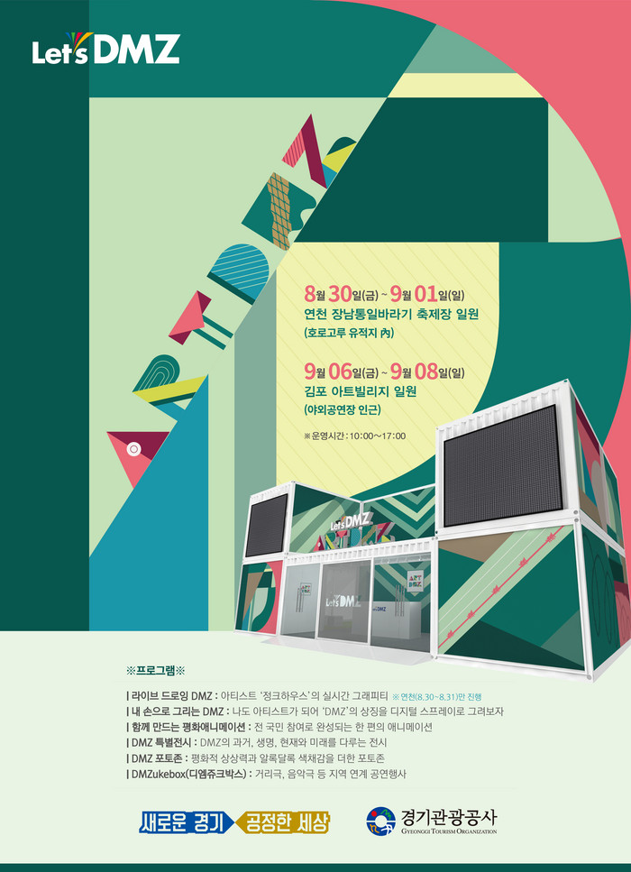 그래피티 아티스트인 정크하우스가 DMZ를 주제로 복층 컨테이너 외벽을 디자인하고, 컨테이너를 붓·스프레이로 실시간 작업하는 ‘라이브 드로잉 DMZ'를 선보인다. 이 복층 컨테이너 1층 내부에서는 디지털 그래피티인 ‘내 손으로 그리는 DMZ' 프로그램도 진행될 예정이다.