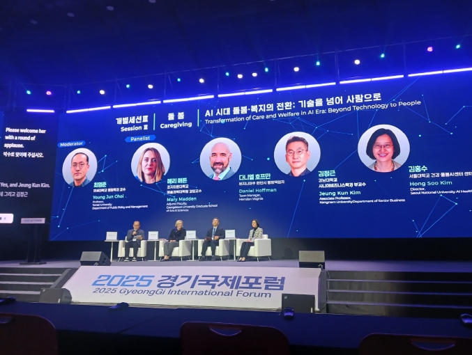 ‘2025 경기국제포럼’의 개별세션 가운데 하나로 지난 11일 열린 돌봄세션에는 국내외 석학, 복지 관련 기관·단체 및 도민 300여 명이 참석해 AI시대의 기술기반 복지에 대한 높은 관심을 나타냈다.