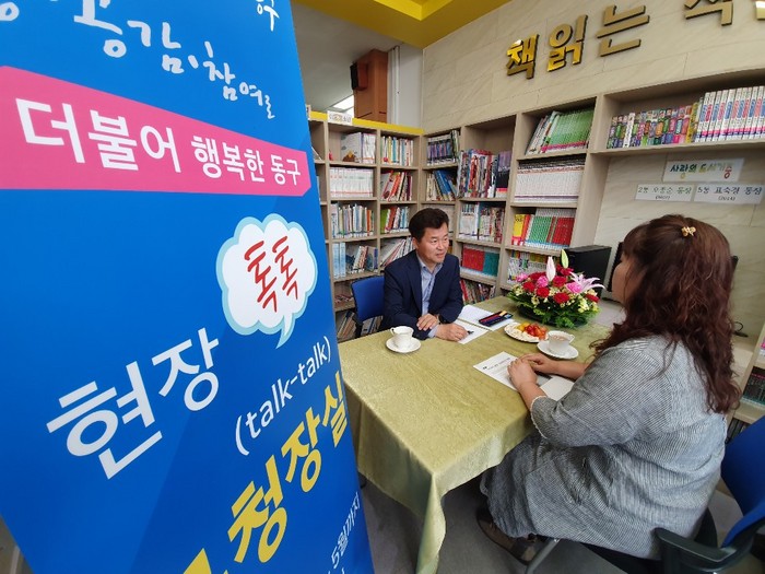 | ▲ 허인환 동구청장은 9일 ‘현장톡톡 구청장실’을 운영하면서 주민들의 고충을 청취하고 있다.(사진=동구청 제공) |