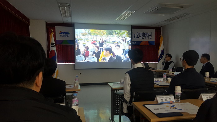 | ▲ 재단법인 충남문화재단이 14일 2018 충남문화재단 문화예술 서포터즈 위촉식에서 오리엔테이션을 진행하고 있다. |