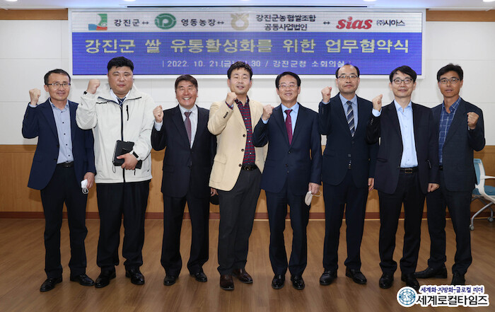 23일 강진군에 따르면 지난 21일 가진 협약을 통해 강진군은 고품질 쌀 생산을 위한 지도와 생산기반 구축지원, 영동농장과 강진군통합RPC는 강진쌀 생산과 공급, 시아스는 지속적인 강진쌀 매입 등에 관해 상호 협력해 나가기로 했다.