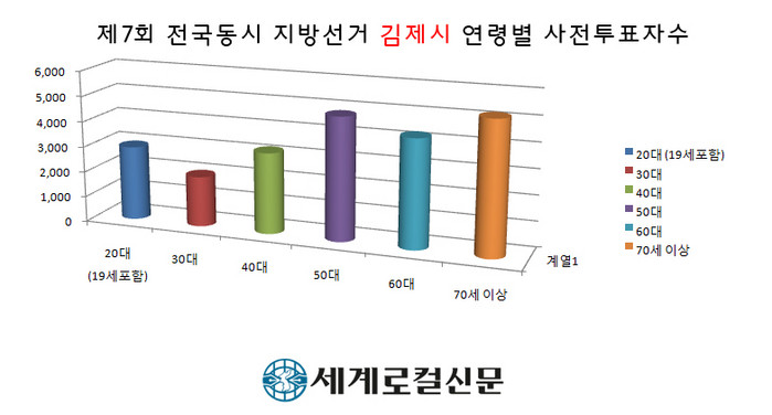[세계로컬신문 조주연 기자] 지난 6·13선거 당시 전북 김제시 유권자 투표 현황을 조사한 결과, 사전투표율은 20대 연령층이 가장 높았으며 사전투표자 수는 70대 이상 연령층이 가장 많았던 것으로 확인됐다.