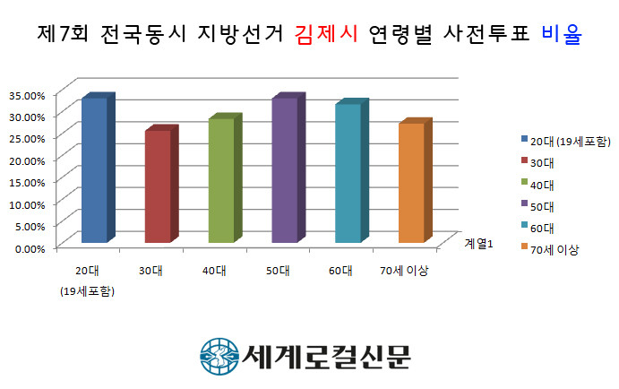 | ▲ 제7회 전국동시지방선거 김제시 연령별 사전투표 비율. |