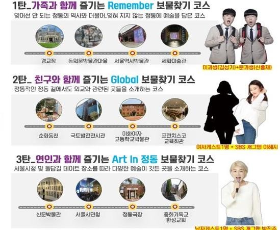 제 1탄은 개그맨 이과생(김성기)+문과생(신흥재)이 진행하는 ‘가족과 함께하는 Remember 보물찾기 코스, 제2탄은 개그우먼 이혜지가 진행하는 ‘친구와 함께 즐기는 Global 보물찾기 코스’, 제3탄은 개그우먼 박진주가 진행하는 ‘연인과 함께 즐기는 Art In 정동 보물찾기 코스’로 유쾌하고 재미있는 정동의 3가지 모습을 소개한다.