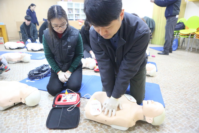 | ▲도시철도 공사가 시민 안전지킴이 위촉에 앞서 ‘심폐소생술’ 등 비상상황에 대비한 교육을 실시하는 모숩. |