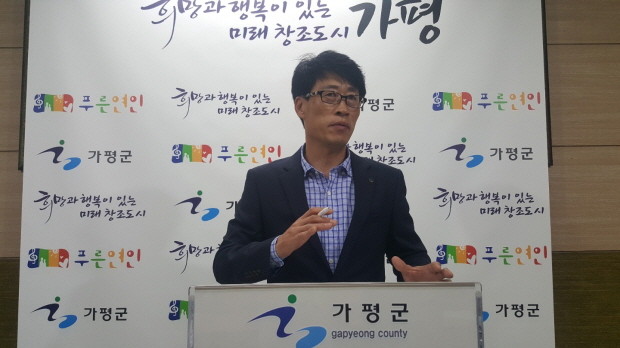 | ▲ 박인택 가평군 허가민원 과장이 14일 브리핑룸에서 민원처리에 대해 설명하고 있다. <사진제공=가평군청> |
