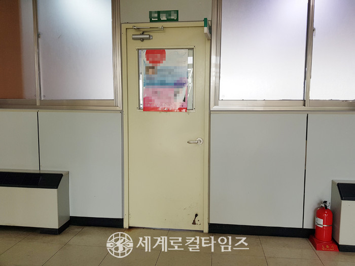 | ▲ 29일 11시 45분, 전북 김제시청 내의 한 부서 문이 굳게 잠겨 있다(사진=조주연 기자) |