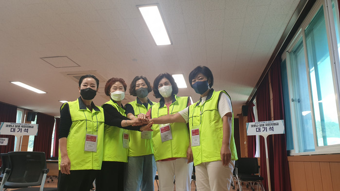 영월군자원봉사센터에서 배치된 자원봉사자들은 접수처 발열검사, 거리 유지, 신청서 작성 도움, 거동이 불편한 주민들의 이동을 도와주는 등 직접적 봉사를 실천한다.