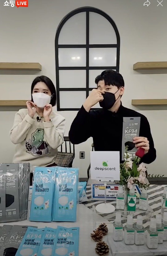 | ▲ 왼쪽 이경림 쇼호스트 외 1명 마스크 판매방송 캡쳐 |