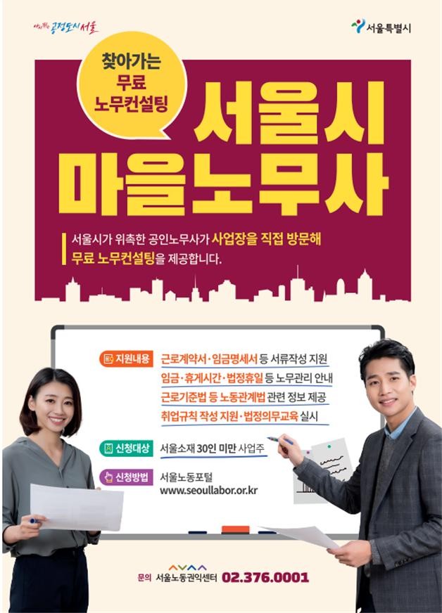 마을노무사 컨설팅 신청은 ‘서울노동포털 홈페이지’에서 선착순 마감이다. 모든 컨설팅 비용은 무료다.