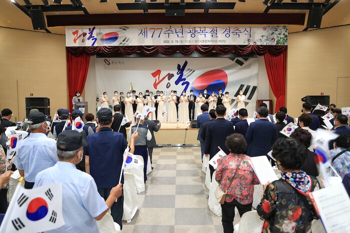 [세계로컬타임즈 홍윤표 조사위원] 제77주년 광복절을 맞아 당진시가 15일 대호지면 창의사 참배를 시작으로 종합복지타운 대강당에서 광복절 경축 행사를 거행했다.