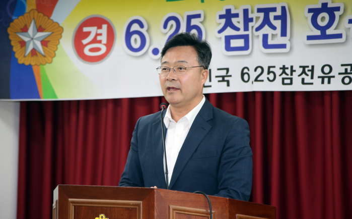 [세계로컬신문 최원만 기자] 김성제 경기도 의왕시장이 19일 의왕 재향군인회관에서 열린 ‘6.25참전 호국영령 위로연’에 참석해 참석자들을 격려하고 있다. 김 시장은 이날 시민들의 안보의식 고취를 위해 6.25참전유공자회가 선도적인 역할을 해줄 것을 당부했다.