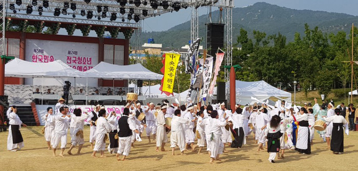 | ▲ (사)우도농악담양보존회가 지난 24일 경남 김해시 수릉원에서 열린 제58회 한국민속예술축제에 전라남도 대표로 참가해 신명나게 공연하고 있다.<사진제공=담양군청> |