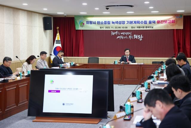 [세계로컬타임즈 이종화 기자] 의왕시는 지난 22일 시청 중회의실에서 김성제 의왕시장을 비롯해 전문가 및 관계공무원 등 22명이 참석한 가운데 ‘의왕시 탄소중립 녹생성장 기본계획 수립용역’ 중간보고회를 개최했다.