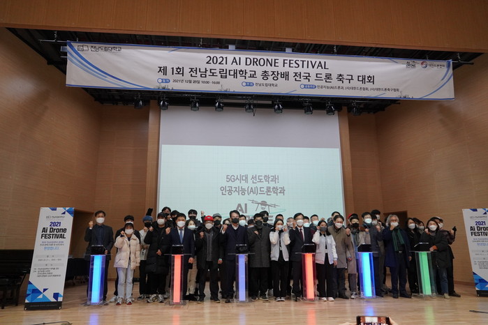 [세계로컬타임즈 김명진 기자] 전남도립대학교(총장 박병호)는 제1회 총장배 전국드론축구대회 및 AI 드론 페스티벌을 열어 4차 산업혁명 시대 드론산업과 인공지능을 융합한 ‘AI 드론산업’ 인력 양성 비전을 선포했다.