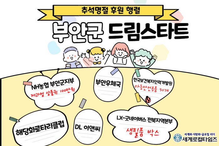 [세계로컬타임즈 조주연 기자] 추석 명절을 앞두고 전북 부안군 드림스타트에 후원 행렬이 이어졌다.