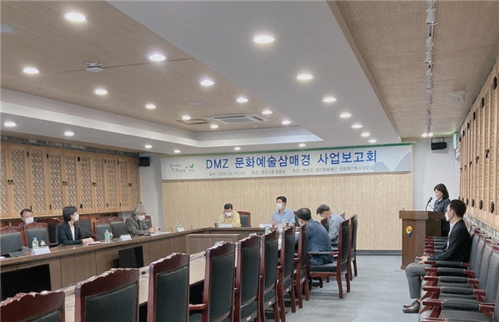 | ▲ 연천군청 상황실에서 DMZ문화예술 삼매경 사업 기본구상용역 보고회가 열리고 있다. (사진= 연천군 제공) |
