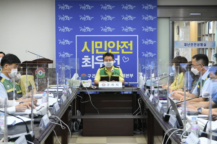 25일 코로나19 일일상황보고 후 안전도시국장, 안전총괄과장, 태풍 관련 부서장 등이 참석한 가운데 열린 회의에서 안승남 구리시장은 “예보된 태풍 기상 상황에 따라 비상시 재난대응 매뉴얼을 가지고 대응해야 한다”며 “피해가 우려되는 취약 지역에 최대한 빨리 사전 안전조치를 실시해 줄 것”을 관련 부서에 지시했다.