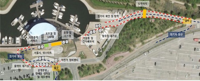 서울시 관계자는 도착지인 서울마리나 앞이 방역부스, 부대행사 시설 등으로 혼잡할 수 있으므로 서울마리나 이용자나 해당 지역을 자전거로 방문하고자 하는 시민은 우회해 줄 것을 당부했다.