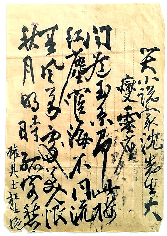 哭小說家沈先生大燮靈座(소설가 심대섭 선생 영전에서 곡하다)/ 聞道玉京卽此樓(하늘에 옥경 있다더니 이 빈소가 거기라네)/ 紅塵官海不同流(번거롭고 속된 관리길 걷지 않았네)/ 春風到處美人恨(봄바람 일렁이면 미인들 한탄하고)/ 秋月明時孤客愁(가을달 밝으니 외론 나그네 시름에 젖는구나)/ 權其玉 狂生 挽(권기옥이 만사를 짓다)
