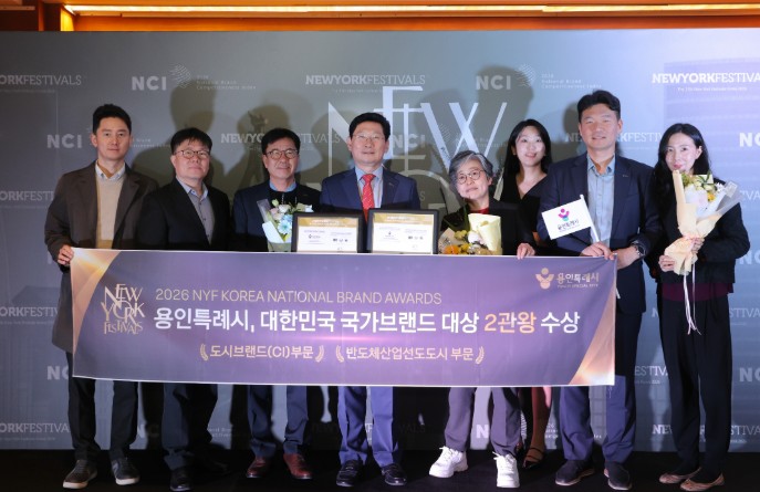 2일 서울 소공동 롯데호텔에서 열린 2026 NYF K-NBA 시상식에서 용인특례시를 대표해 이상일 시장이 두 부문의 상을 각각 수상했다.