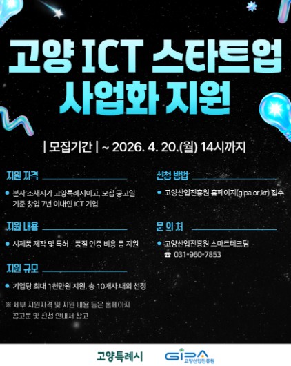 이번 사업은 고양시 소재 ICT 분야 스타트업의 사업화를 촉진하고 경쟁력을 강화하기 위해 추진되는 것이며 본사 소재지가 고양시인 창업 7년 이내 기업을 대상으로 한다.