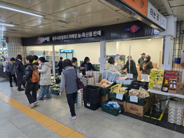 이번 매장은 충주시와 서울교통공사가 도농 상생과 농산물 직거래 확대를 위해 추진한 협력사업으로, 수도권 시민들에게 충주 농산물을 가까이에서 소개하기 위해 마련됐다.