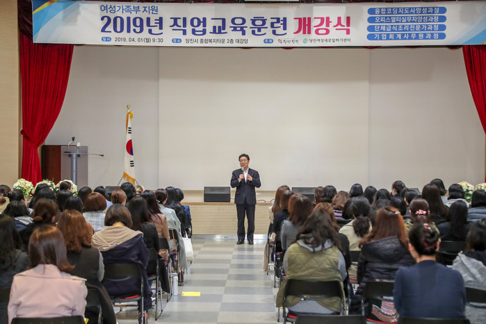 2일 일하기센터에 따르면 지난 1일 훈련생 80명이 참석한 가운데 당진시종합복지타운 대강당에서 개강식(사진)을 갖고 융합코딩지도사 양성과정과 오피스멀티 실무자 양성과정, 단체급식조리 전문가 과정, 기업회계사무원 양성과정 등 모두 4개 과정의 직업교육훈련을 진행한다.