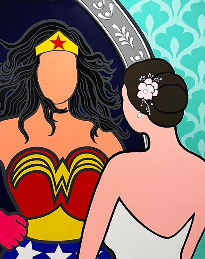 더불어 “인생, 살아가면 갈수록 아니 살아내면 낼수록 난코스가 곳곳에 포진돼있고 힘에 부치고 버겁기가 이루 말할 수 없다”며 “그래서 나는 여린 자아를 보듬고 보호하고 격려하는 도구로 일찌감치 내면에 막강한 여성 히어로와, 그 코스튬을 장착시켰기에 화면에 펼쳐지는 나 자신과 또 다른 여성들의 모습 모두 원더우먼들이다. 이는 현대인의 삶은 고단 그 자체, 변화무쌍한 빅월드, 이런 오늘날을 살아내는 모두가 이미 히어로적 삶이다”라고 자신의 작업 철학을 밝히기도 했다.