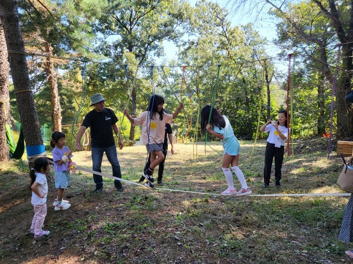 주요 프로그램으로는 ▲밧줄 놀이 ▲나무 놀이 ▲자연 놀이 등 자연 속에서 가족관계 형성에 도움을 줄 수 있는 활동으로 구성했다.