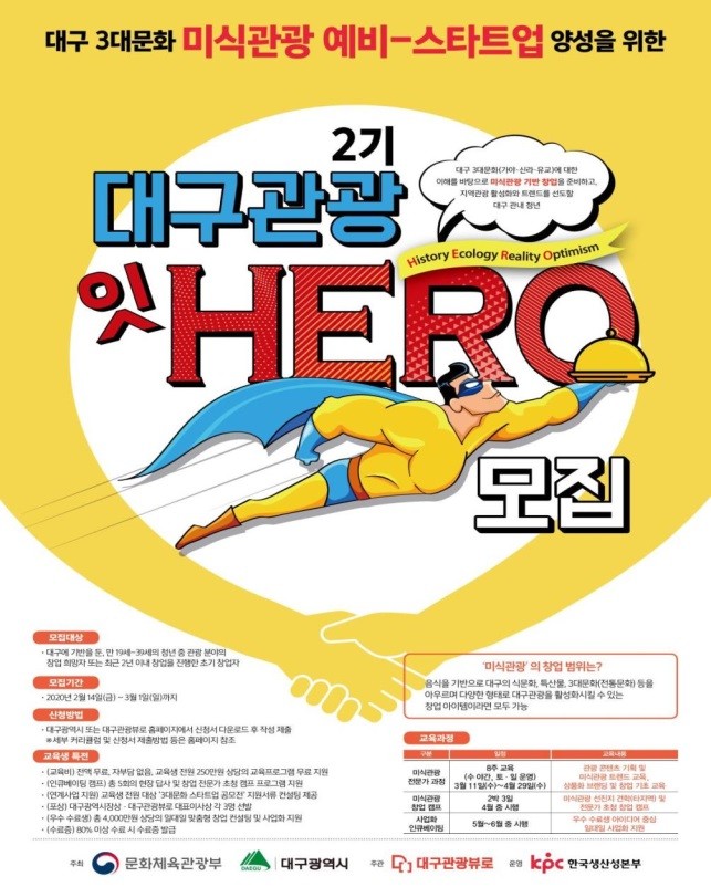 | ▲미식관광 예비 스타트업 양성 프로그램인 2기 ‘대구관광 잇 히어로(HERO)’과정 교육생 모집 포스터.(사진=대구시청 제공) |