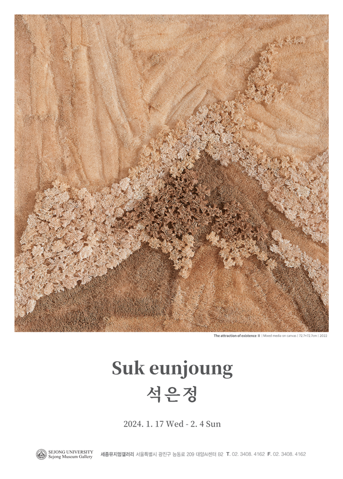 세종뮤지엄갤러리 큐레이터는 “석 작가는 가공하지 않은 자연 상태 그대로의 수세미 심을 활용해 평면적인 형식에서 점차 부조의 형식으로 발전하며, 수세미의 다양한 형상을 통해 추상적이면서도 매력적인 작품을 선보인다”며 “또한 단색조의 색채이미지를 통해 동양적인 미의 개념을 탐구하며 단색이 가지는 특별한 힘을 표현한 전시가 될 것”이라고 설명했다.