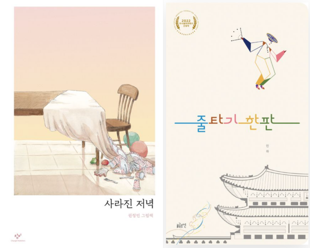 올해 대상으로는 픽션 작품인 ‘사라진 저녁’(권정민, 창비)과 논픽션 작품인 ‘줄타기 한판’(민하, 글로연)이 선정돼 문체부 장관상과 상금 각 1,500만 원을 받는다.