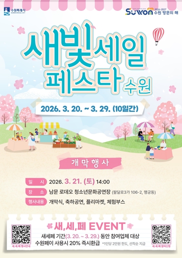 ‘지역 상권을 찾아가는 새빛세일페스타’를 슬로건으로 하는 제7회 새빛세일페스타는 수원시 소상공인·전통시장·골목형상점가·대규모점포 등이 참여하는 사은·할인 행사다.