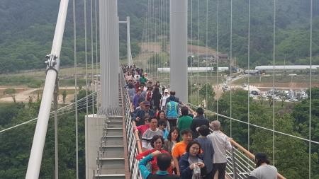 특히 바람 세기에 따라 사람들의 발걸음에 따라 흔들림이 달라지며 중앙부로 갈수록 더욱 강하게 흔들린다.