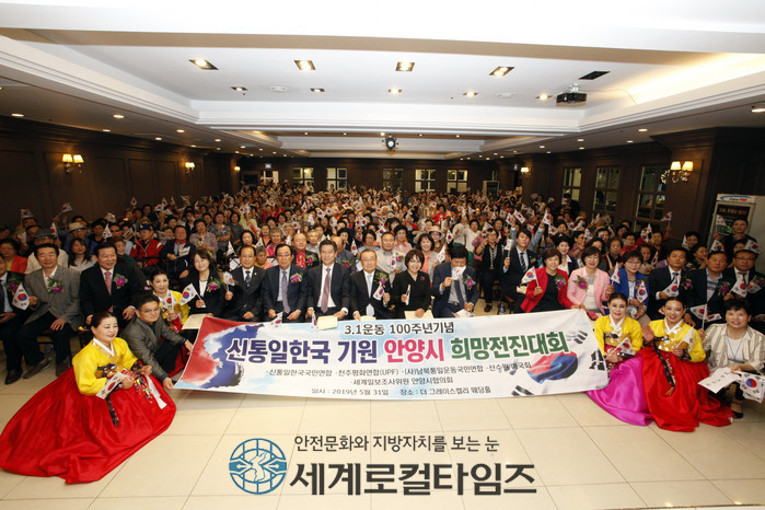 (사)남북통일운동 국민연합과 세계일보조사위원 안양시협의회는 3·1운동 100주년을 기념해 새로운 통일시대를 준비하는 ‘신통일한국 기원 안양시 희망전진대회’를 지난달 31일 안양에서 열었다.