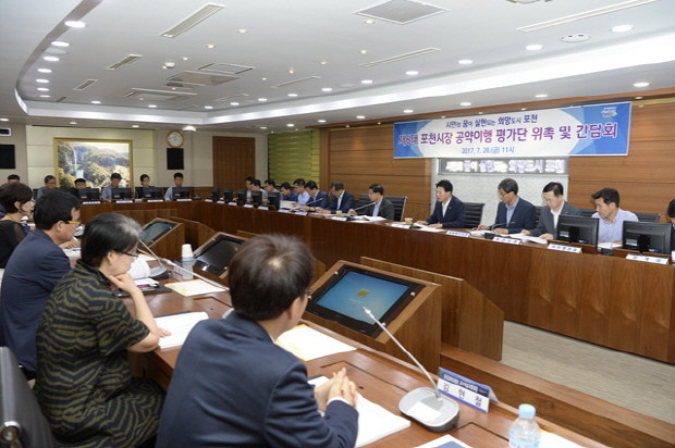 [세계로컬신문 고성철 기자] 경기도 포천시(시장 김종천)는 지난달 28일 시청 시정회의실에서 국·단·소장과 공약사업 담당부서장, 공약이행 평가단 8명 등 40여명이 참석한 가운데 공약이행 평가단 위촉 및 간담회를 열었다.