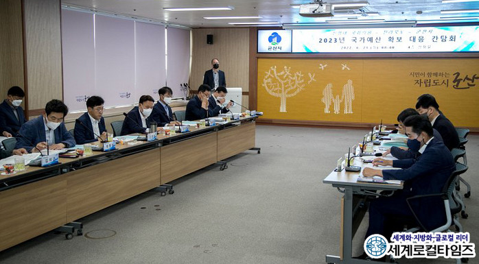 [세계로컬타임즈 조주연 기자] 전북 군산시가 21일 전북도 및 신영대 국회의원과 민선 8기 운영방향 및 2023년도 국가예산 확보 방안을 논의하기 위한 간담회를 가졌다.