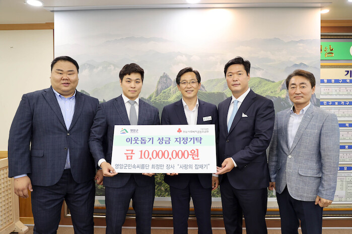 [세계로컬타임즈 강석운 기자] 영암군민속씨름단(감독 김기태)의 주장 최정만 장사는 지난 18일 아동복지시설인 영암영애원에 불우이웃돕기 성금 1천만원을 지정 기탁했다.