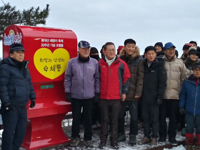 | ▲ 홍농읍 봉대산 해맞이 축제에서는 “희망과 상생의 우체통”조형물이 제작 설치됬다. (사진=한빛원전 제공) |