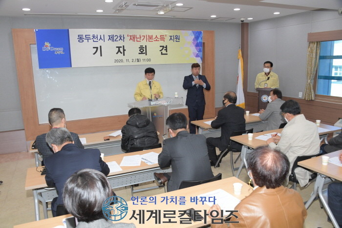 [세계로컬타임즈 신선호 기자] 동두천시장은 2일 11시 시청 소회의실에서 2차 재난기본소득 지급에 대한 담화문을 발표하고 기자회견을 가졌다.