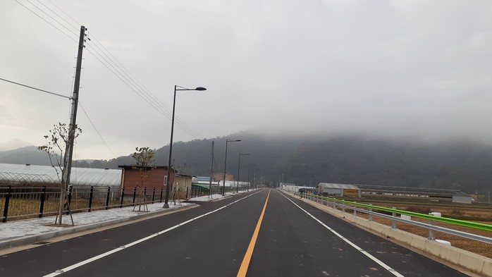 | ▲화순군이 능주 남정리 종방단지 입구에서 수산식품 클러스터 조성부지까지 길이 610m, 도로폭 15.5m 도로 개설을 완료했다.(사진=화순군) |