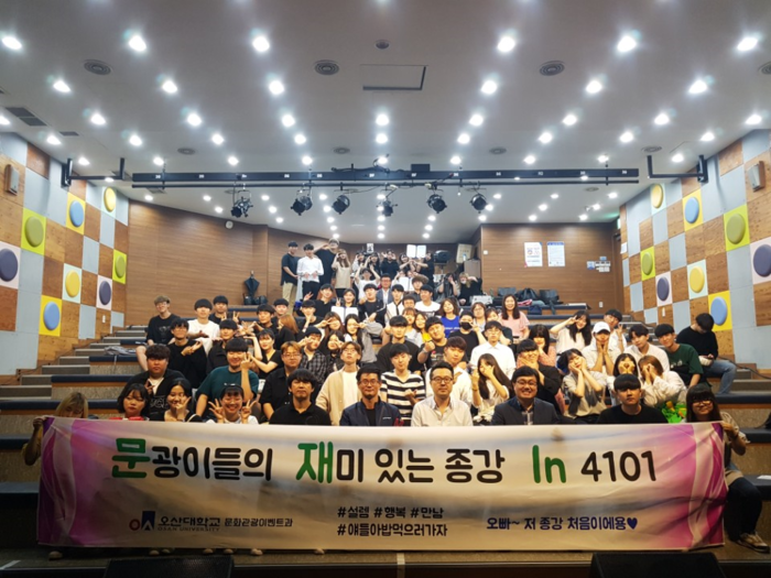 오산대 문화관광이벤트과 학생 150여명과 교수들은 '문광이들의 재미있는 종강 In 4101'이라는 주제로 종강콘서트를 열었다.