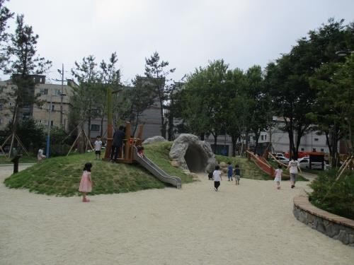 또 그간 우범지역으로 우려되었던 사각 울타리를 모두 제거해 사방에서 훤히 보며 걸을 수 있는 잔디로를 조성했으며 파고라와 같은 그늘막 쉼터를 설치해 부모와 함께 휴식할 수 있는 공간을 넉넉히 마련하고 전체적으로 나무와 초화류 등을 식재해 푸른 공간을 조성했다.