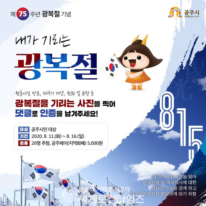 [세계로컬타임즈 조주연 기자] 충남 공주시는 제75주년 광복절을 앞두고 '인증샷' 이벤트를 진행한다.