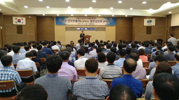 이날 강연은 김종천 포천시장을 비롯해 간부 공무원 등 직원 200여명이 참석했으며 '동반성장과 규제개혁-한국경제, 어떻게 살릴 것인가'라는 주제로 진행됐다.
